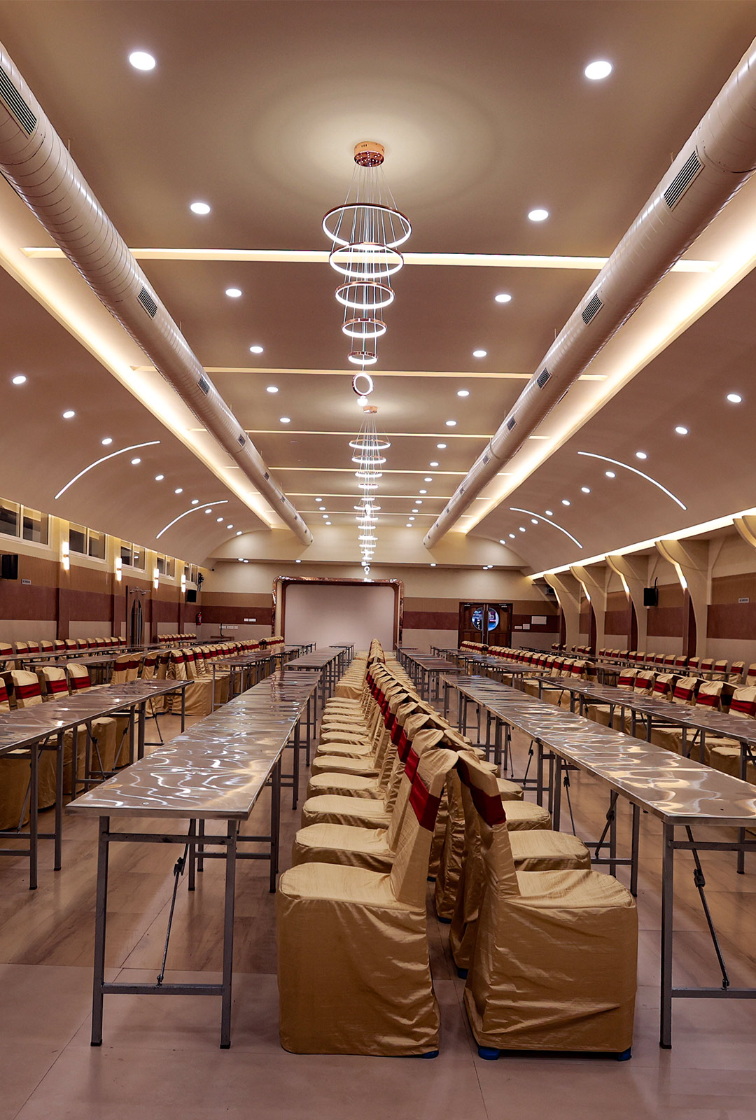 With a 700+ seat main hall and a dining capacity of approximately 300+ guests at a time, we ensure smooth event flow and guest comfort. Ample parking for up to 200 cars and nearby accommodation at Shilpa Regency make event planning convenient and stress-free.