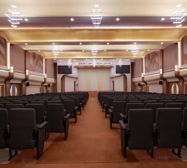 The Grand Main Hall at Shilpa Convention Centre is a spacious, fully air-conditioned venue designed to host large-scale weddings, receptions, conferences, and cultural programs with comfort and elegance. With seating capacity for 550 guests and an additional 150 seats in the balcony, the hall provides excellent visibility of the stage from every angle. The expansive layout, well-designed stage area, and modern infrastructure ensure a seamless and memorable experience for both hosts and guests.